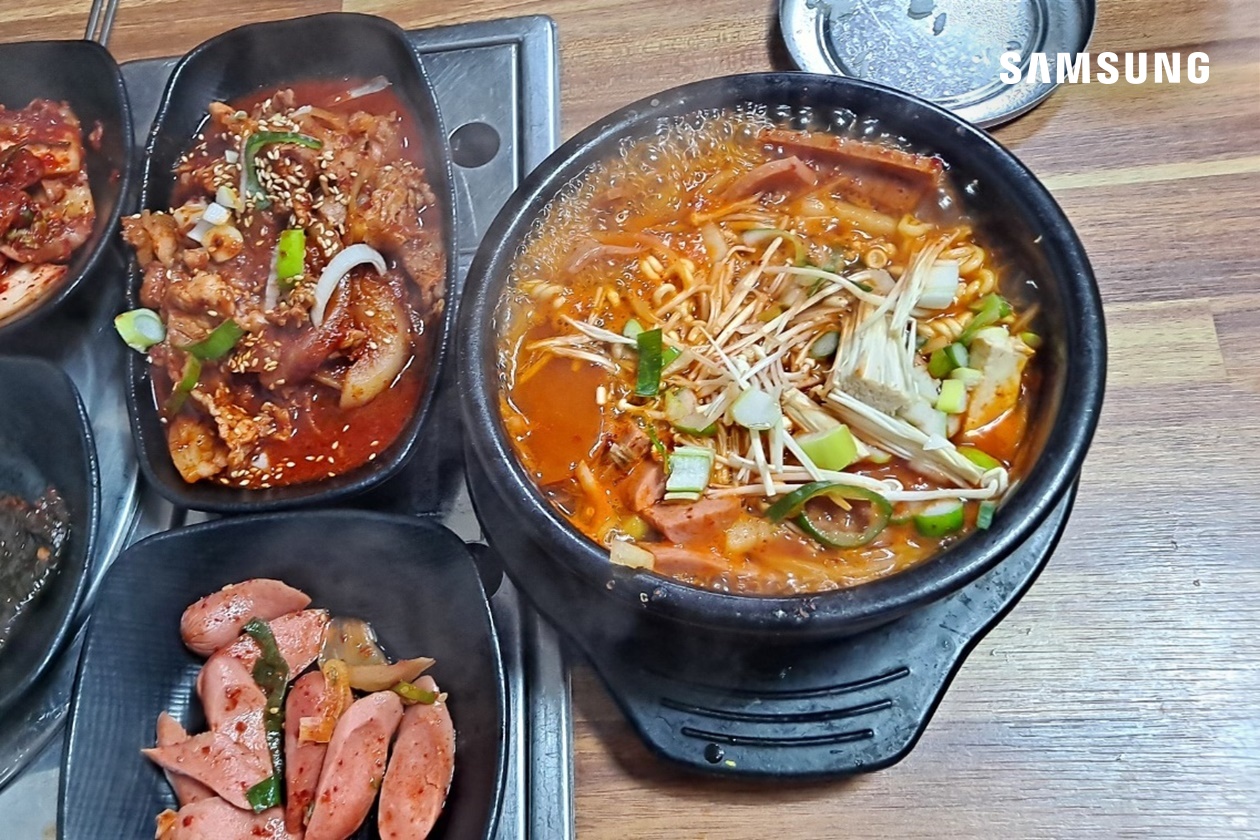 의정부에는 부대찌개 거리가 있을 정도로 부대찌개가 유명한 지역인데요. <모자백반>의 부대찌개도 의정부 로컬인들에게 사랑받는 메뉴입니다. 진한 육수에 얼큰한 맛이 어우러져 속이 풀리는 느낌이 들었는데요. ▲라면사리 ▲햄 ▲팽이버섯 등 양이 푸짐해 든든하게 한 끼를 해결할 수 있었습니다.