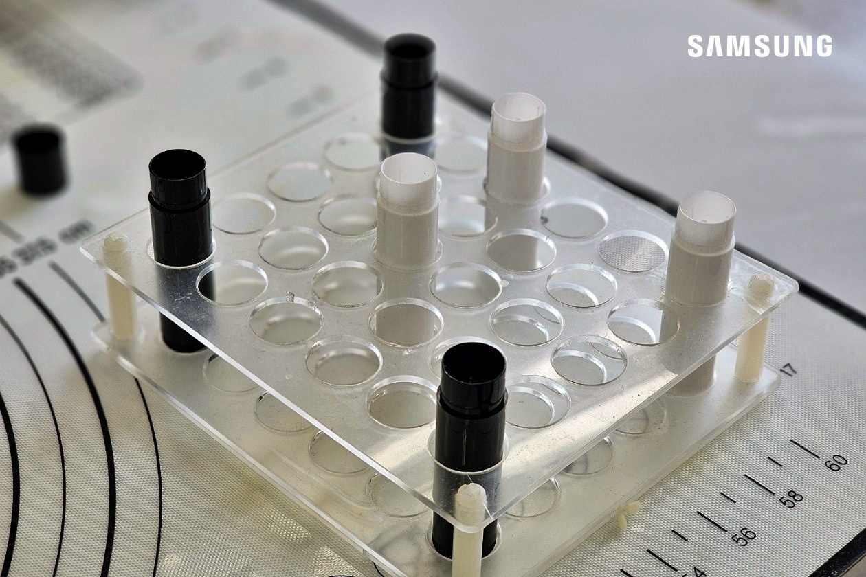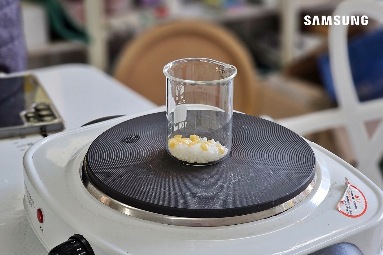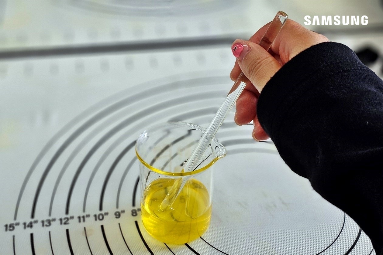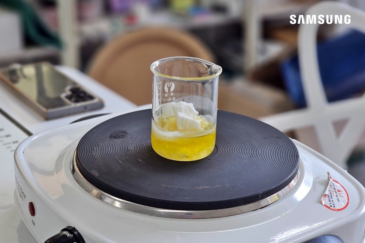 재료를 담은 비커를 핫플레이트에서 약한 불로 천천히 녹이면 됩니다. 재료가 녹을 동안 천연 립밤 용기를 소독하여 준비해야 하는데요. 수원 공방 <민들레다락방>의 천연 립밤 만들기 원데이 클래스에서는 총 30ml 용량으로 6개의 립밤을 만들 수 있습니다.