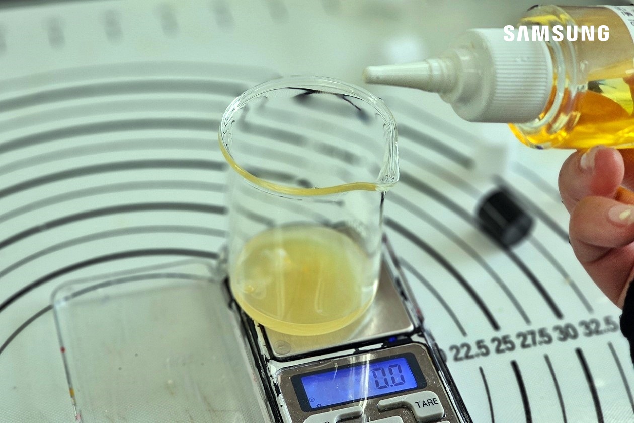 재료가 다 녹으면 잘 섞어준 뒤, 용기에 조심히 부어주면 됩니다. 이때 내용물이 굳으면서 양이 줄어들 수 있기 때문에 봉긋한 모양으로 담는 것이 중요합니다.